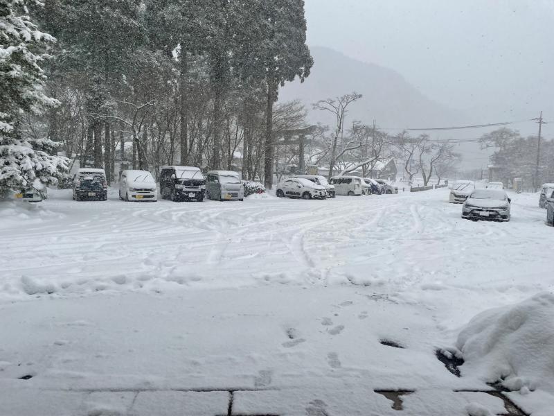 周辺道路にも積雪と凍結がみられますので、ご来場の際は必ずスタッドレスタイヤを着用し、チェーンの携帯など冬用対策をお願い致します。